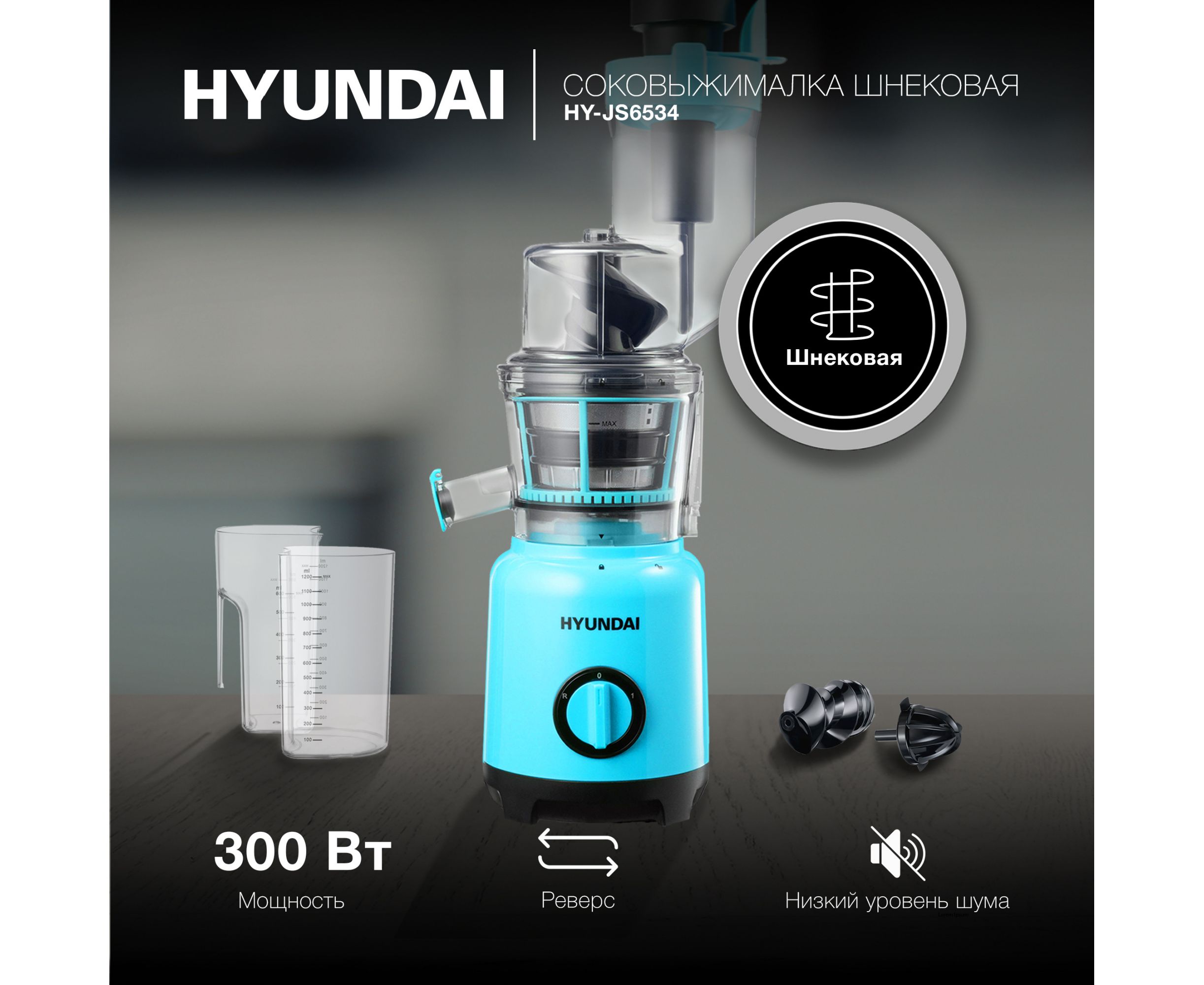 Соковыжималка шнековая Hyundai HY-JS6534 светло-синий