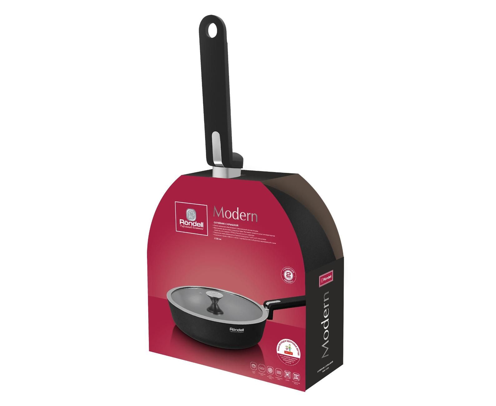 Сотейник Rondell Modern RDA-1724 3.9л. d=28см (с крышкой) черный