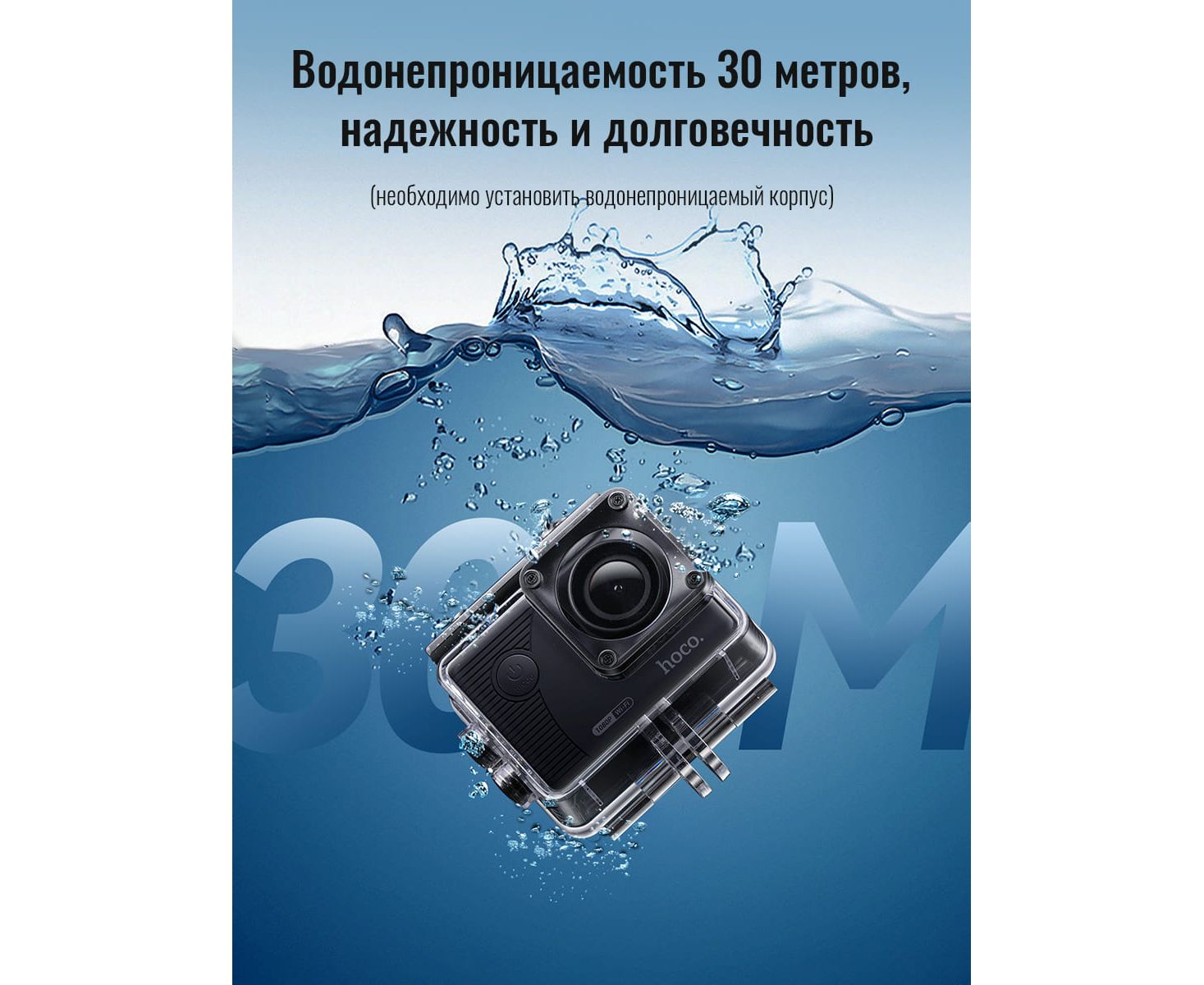 7. Водонепроницаемость до 30 метров(с водонепроницаемым чехлом только!).