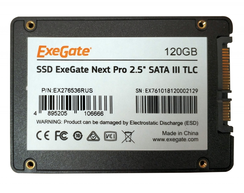 SSD 2.5" 120GB SATA3 ExeGate Next Pro (EX276536RUS) (TLC, SM2258, R/W: up to 507/350MB/s, MTBF: 1.8 млн. ч)