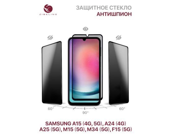 Защитное стекло Privacy антишпион для Samsung A15 (4g), A15 (5g), A24 (4g), A25 (5g), M15 (5g), M34 (5g), F15 (5g)