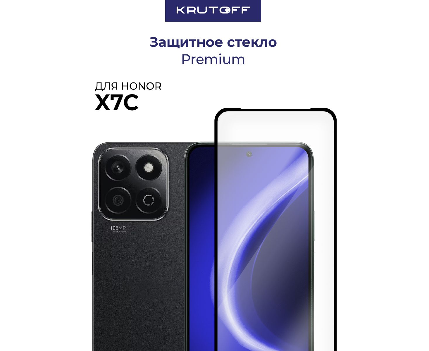Стекло защитное Full Glue Premium Krutoff для Honor X7d/X7c черное
