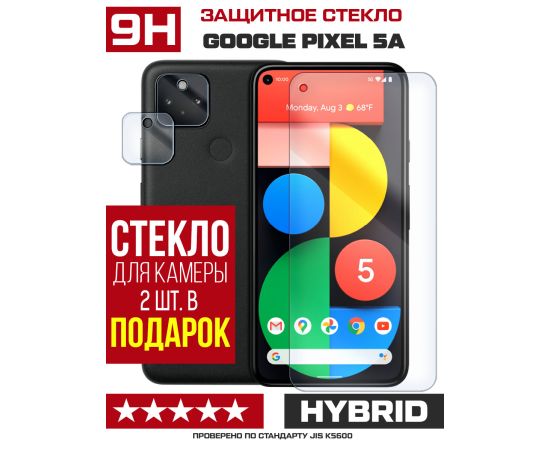 Стекло защитное гибридное для Google Pixel 5a + защита камеры (2 шт.)