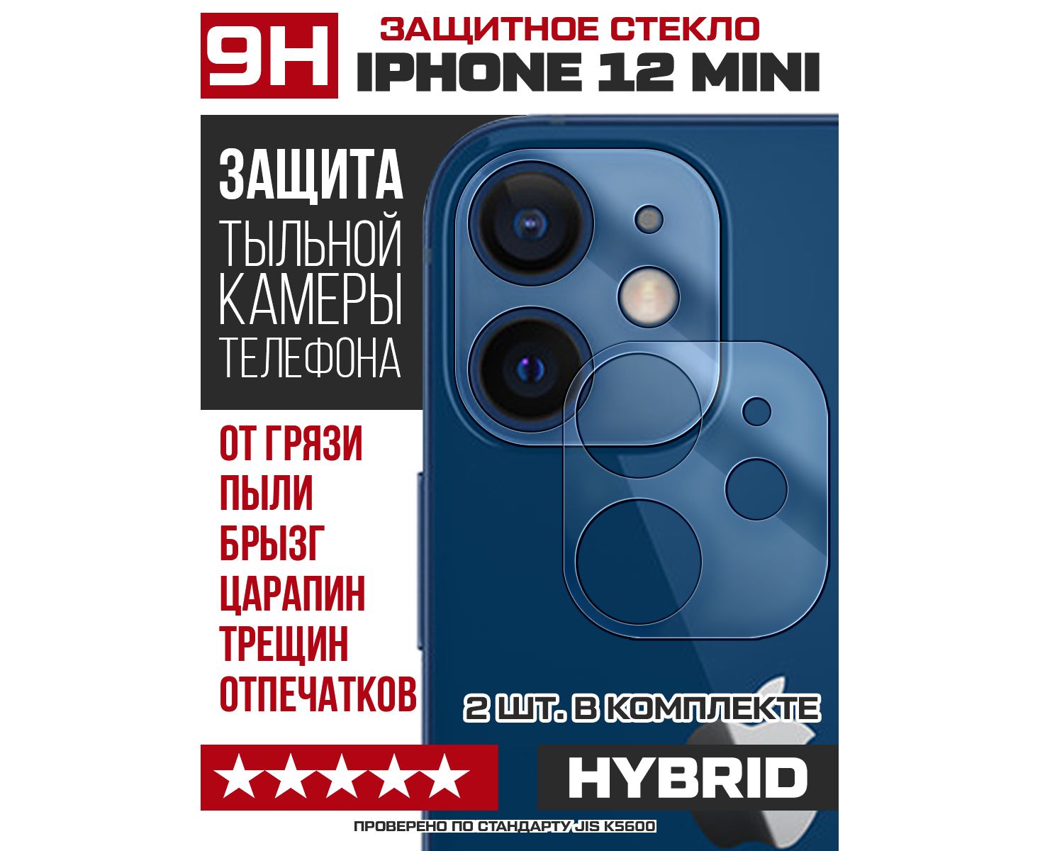 Стекло защитное гибридное для камеры iPhone 12 mini (2шт.)