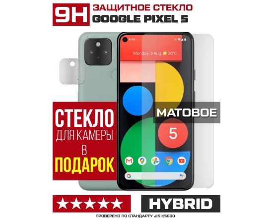 Стекло защитное гибридное МАТОВОЕ Krutoff для Google Pixel 5 + защита камеры (2 шт.)