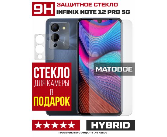 Стекло защитное гибридное МАТОВОЕ Krutoff для INFINIX Note 12 Pro 5G + защита камеры (2 шт.)