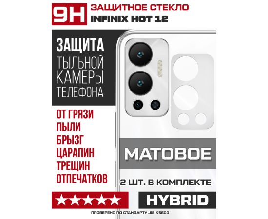 Стекло защитное гибридное МАТОВОЕ Krutoff для камеры INFINIX Hot 12 (2 шт.)