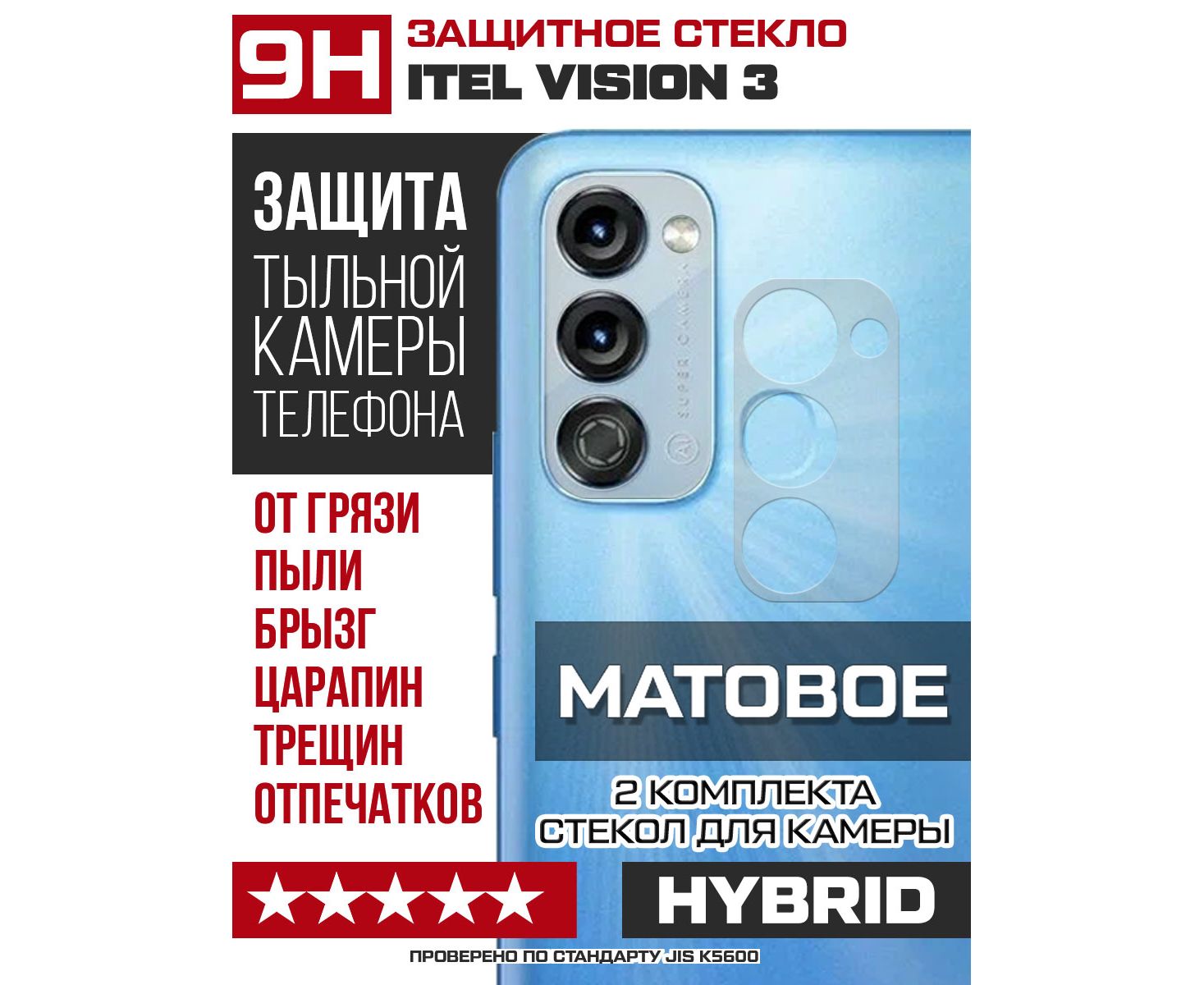 Стекло защитное гибридное МАТОВОЕ Krutoff для камеры ITEL Vision 3 (2 шт.)