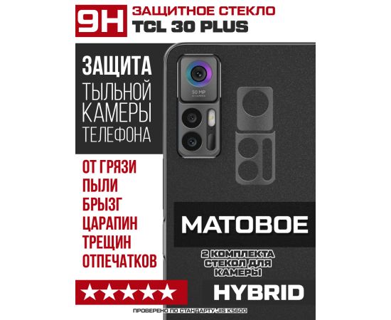 Стекло защитное гибридное МАТОВОЕ Krutoff для камеры TCL 30 Plus (2 шт.)