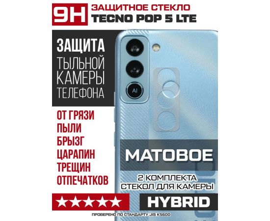 Стекло защитное гибридное МАТОВОЕ Krutoff для камеры Tecno POP 5 LTE (2 шт.)