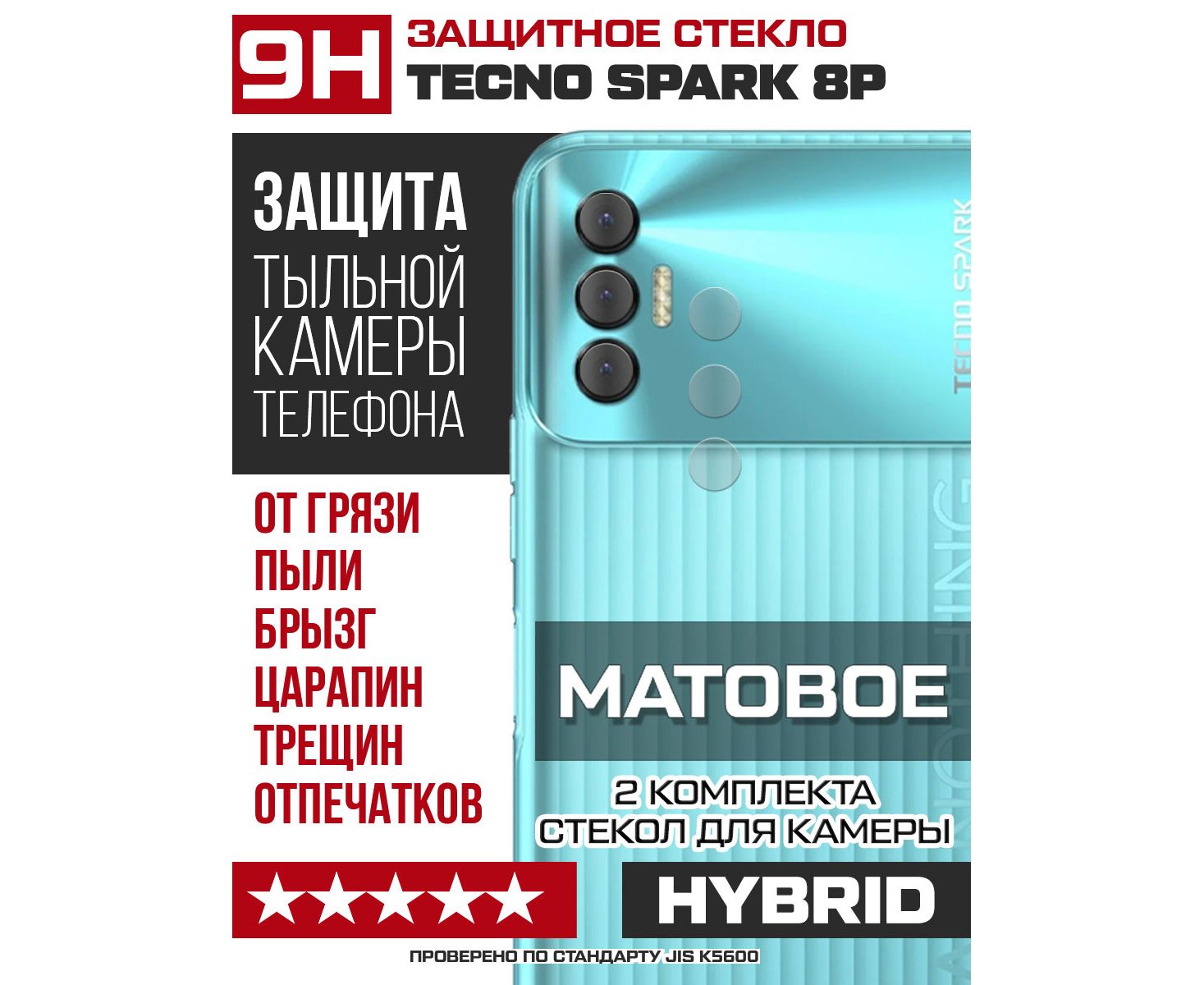 Стекло защитное гибридное МАТОВОЕ Krutoff для камеры Tecno Spark 8P (2 шт.)