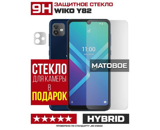 Стекло защитное гибридное МАТОВОЕ Krutoff для Wiko Y82 + защита камеры (2 шт.)
