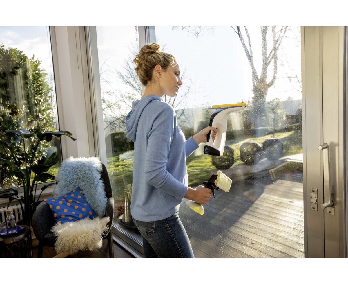Продуманная комбинация пульверизатора для нанесения чистящего средства, микроволоконной насадки для его распределения по стеклу и самого стеклоочистителя, оснащенного электрическим всасывающим устройством, обеспечивает сияющую чистоту стекол – на них не остается никаких полос или разводов.