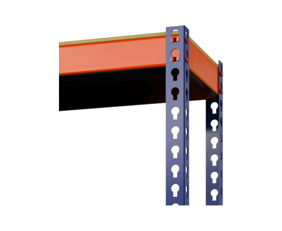 Стойки изготовлены из Г-образного стального холоднокатаного профиля, перфорированы по всей длине с шагом 45 мм, что позволяет установить полки на любой нужной высоте. Настил полок выполнен из влагостойкой фанеры толщиной 10 мм.