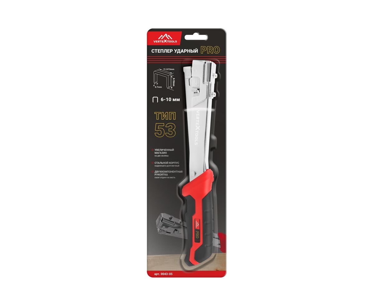 Степлер Vertextools Pro 0043-05 ударный молоткового типа 6-10 мм (тип 53)