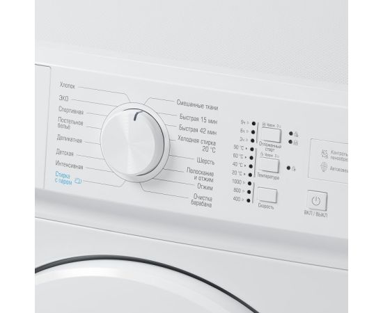 Основные программы Хлопок, Деликатная, Интенсивная, Смешанные ткани, Быстрая 42/15 мин, Холодная стирка 20°С, Отжим, Шерсть, Полоскание и отжим, Очистка барабана