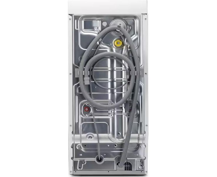 Модель имеет вертикальную загрузку, что обеспечивает удобство в использовании. Размеры машины (90.8 см высота, 39.7 см ширина и 59.9 см глубина) позволяют ей идеально вписаться в любой интерьер. Объем барабана составляет 42 литра, что позволяет стирать до 6 кг белья за один цикл.