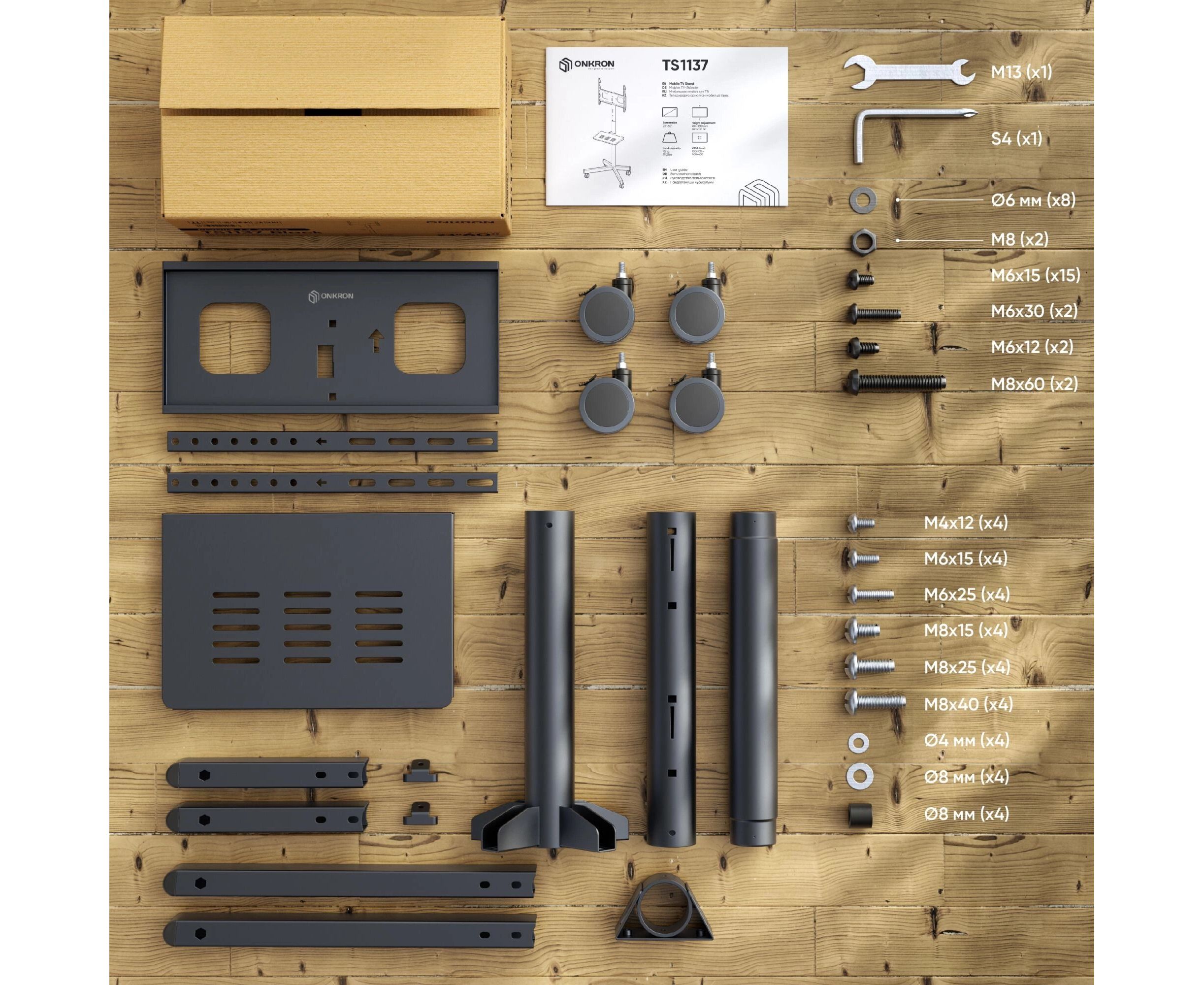 Стойка для телевизора Onkron TS1137 черный 20"-60" макс.45кг напольный мобильный