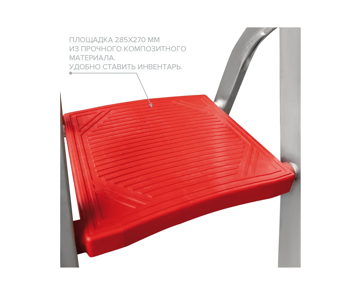 Ступени и стойки изготовлены из прессованных алюминиевых профилей увеличенного сечения, площадка - из композитных материалов - долговечность