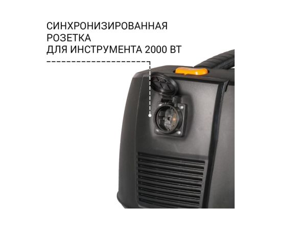 Устройство оснащено встроенной синхронизированной розеткой 2000 Вт, которая позволяет подключать дополнительные электроинструменты напрямую к пылесосу. Это сильно упрощает процесс уборки и экономит время.