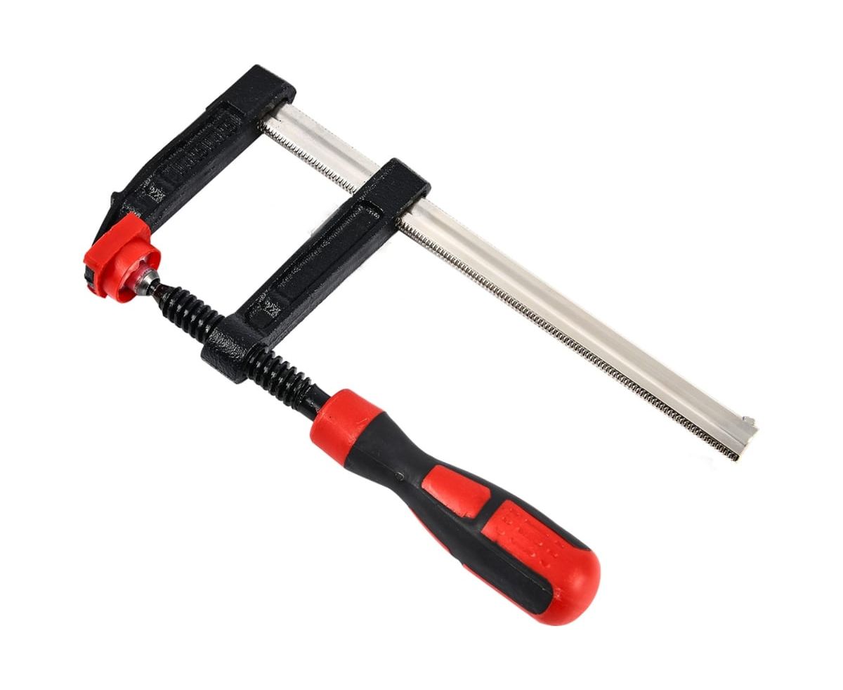 Столярная F-образная струбцина используется в столярном, слесарном и плотницком деле и позволяет фиксировать заготовки из металла, древесины, пластика и других материалов для их соединения, обработки, склеивания, шлифовки, сверления и пр.