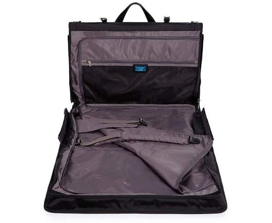Стильный и функциональный портплед для костюма из коллекции Piquadro Brief. Изготовлен из износостойкого нейлона с кожаной отделкой. Имеет одно отделение с фиксирующими ремнями для костюма, внутренний и внешние карманы на молнии, ручки и съемный плечевой ремень для удобной транспортировки. Габариты портпледа подходят для провоза в салоне самолета в качестве ручной клади. На задней части предусмотрено крепление на ручку чемодана. Очень полезный аксессуар для путешествий и бизнес-командировок.