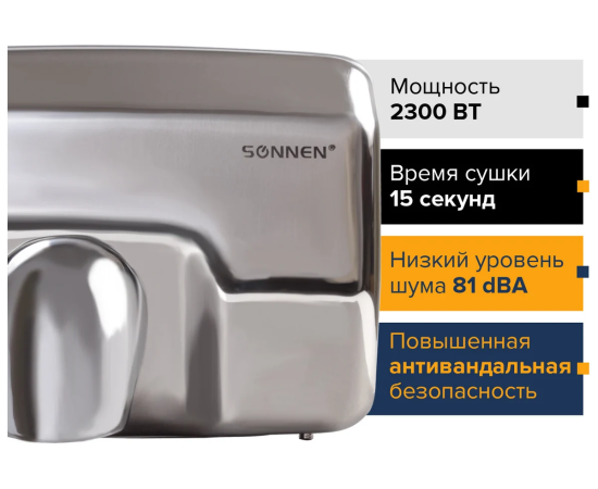 Сушилка для рук Sonnen HD-798S 604194 2300Вт/время сушки 15 сек./нерж.сталь