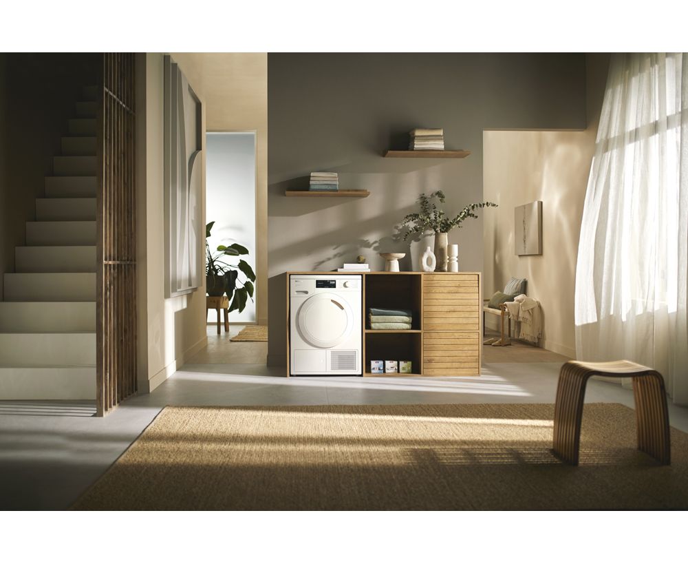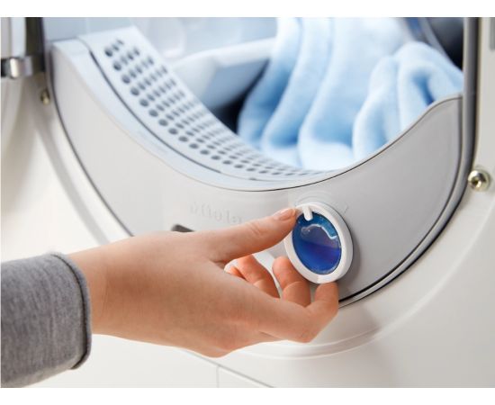 Сушильная машина Miele TWC220WP оснащена мощным инверторным двигателем, который способствует снижению уровня шума и экономичному энергопотреблению. Кроме этого, ее можно установить на стиральную машину. У модели есть программы для эффективного высушивания вещей из денима и хлопка, шерсти и тонких тканей. Функция FragranceDos позволяет применять специальную капсулу с ароматизатором для придания белью свежего приятного запаха. Сотовая структура внутренней поверхности барабана и реверсивное вращение отвечают за деликатное равномерное высушивание вещей.
