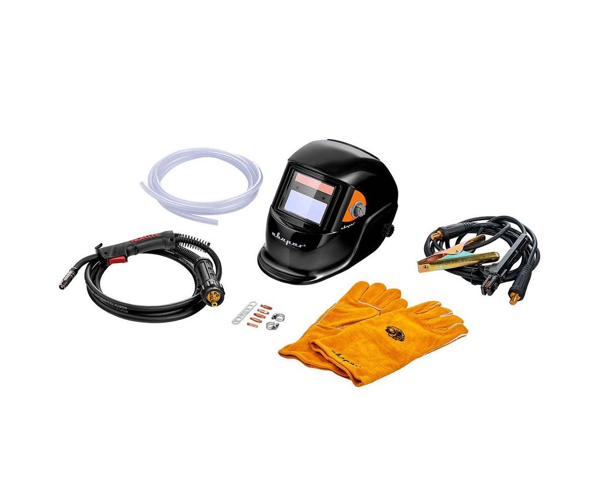 горелка в сборе, клемма заземления в сборе, маска, краги, комплект ЗИП, руководство по эксплуатации