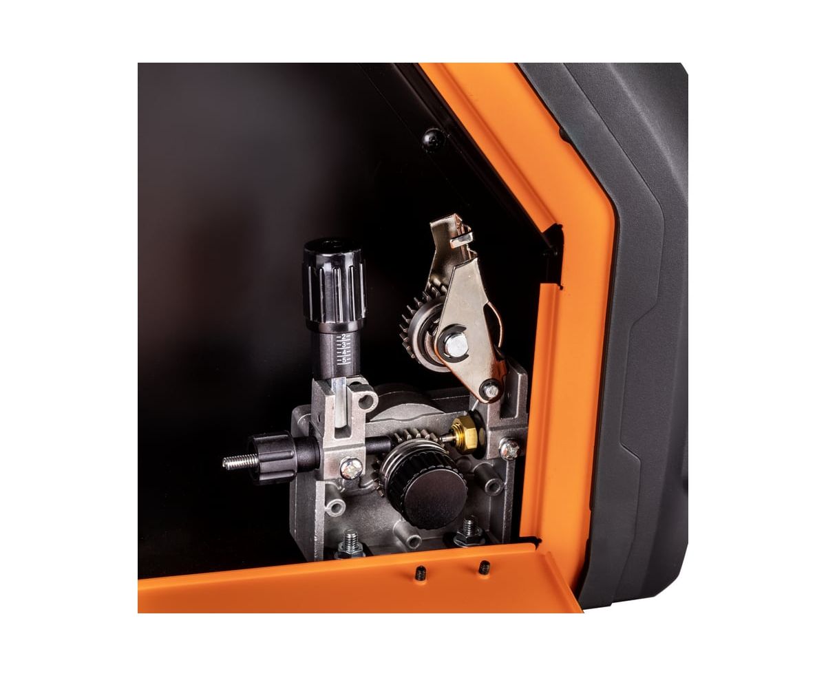- ПОЛНОПРИВОДНЫЙ МЕХАНИЗМ ПОДАЧИ В аппарате используется 2-роликовый полноприводный механизм подачи сварочной проволоки с двумя ведущими роликами Полноприводный механизм подачи обеспечивает стабильную подачу сварочной проволоки при использовании длинных горелок и при продолжительном сварочном процессе 2 ведущих ролика – это минимальная деформация и давление на проволоку, что критично для качественной сварки алюминия и сплавов