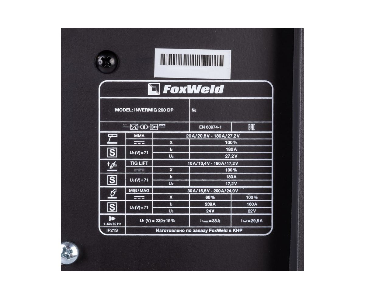 Технические характеристики Foxweld INVERMIG 200 DP 9301