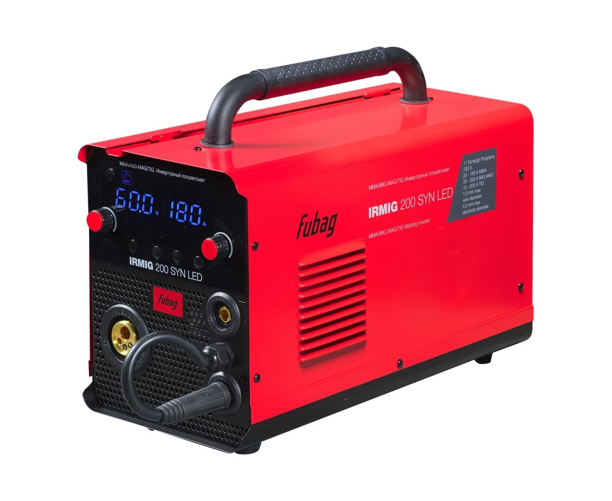Сварочный полуавтомат Fubag IRMIG 200 SYN LED – высокопроизводительный сварочный аппарат с ярким LED-дисплеем. Выбор методов сварки MMA, MIG/MAG, TIG Lift. Имеет 11 встроенных синергетических программ.