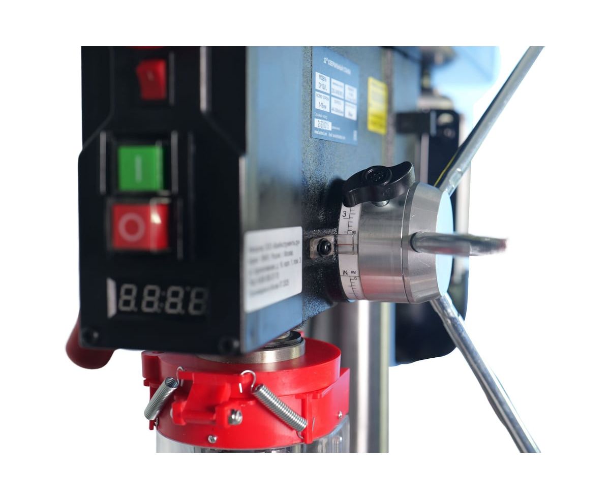 Сверлильный станок BUCKTOOL с вылетом 12 дюймов (305 мм) предназначен для профессионального использования. Оснащен мощным индукционным двигателем 6.2 А (0.75 л.с.), обеспечивающим стабильный крутящий момент при работе с деревом, металлом и пластиком. Плавная регулировка скорости от 580 до 3200 об/мин с цифровым дисплеем позволяет точно подбирать режим для разных материалов. Чугунный стол поворачивается на 360° и наклоняется до 45° в обе стороны. Лазерный целеуказатель и светодиодная подсветка повышают точность позиционирования. Безопасность обеспечивают аварийный выключатель и защита от повторного включения.