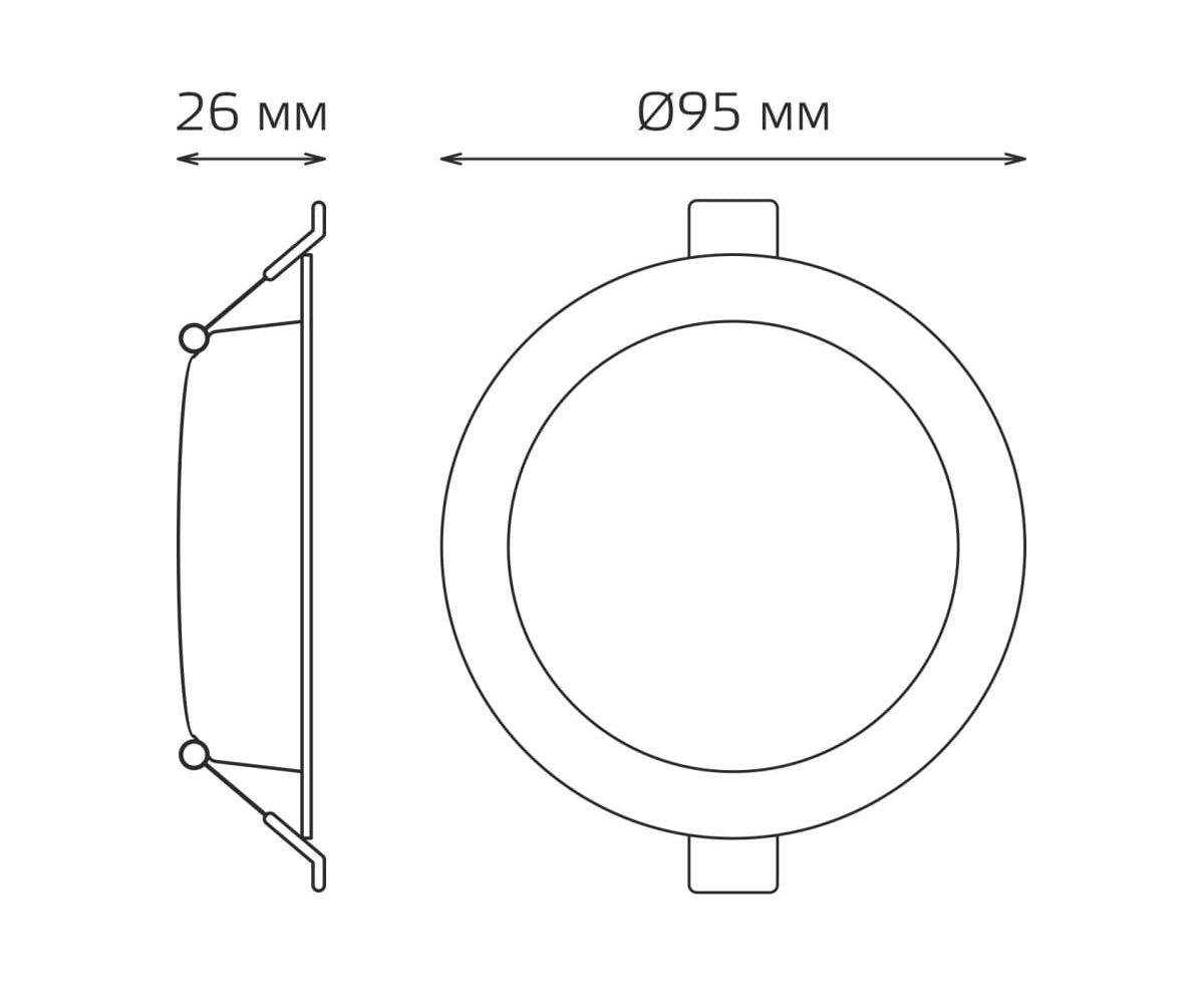 Технические характеристики Gauss ElementaryDownlight круг5W 430lm4000K IP20 95×38монтаж белыйL 9100420205T