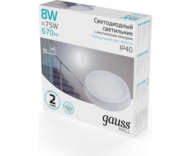 Светильник Gauss ЖКХ 193411208-OAS 8Вт 4000K белый датч.движения