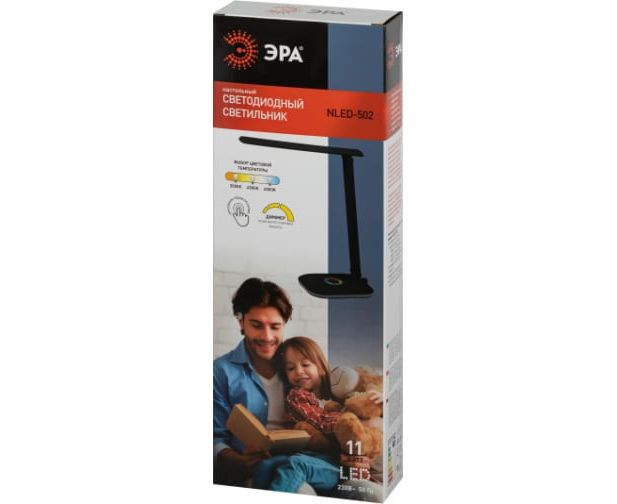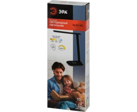 Настольный светильник ЭРА NLED-502-11W-BK со светодиодами (LED) в качестве источников света. Удобная складная модель с сенсорным управлением, возможностью выбора цветовой температуры и плавным диммером для регулировки яркости. В основание светильника встроен светодиодный ночник с независимым выключателем и выбором режима работы.