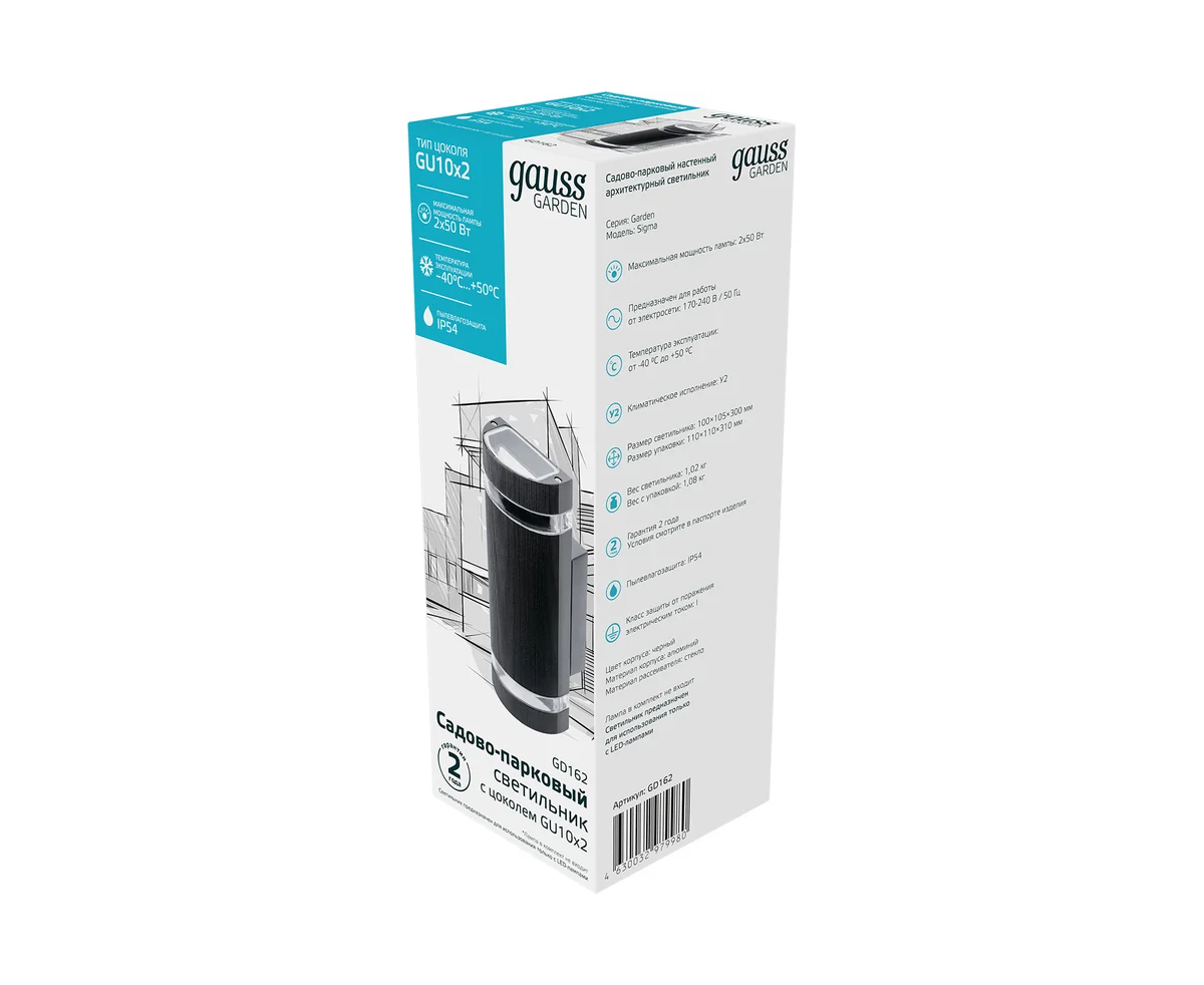 Технические характеристики Gauss Enigma 2xGU10, 100х105х300мм GD162