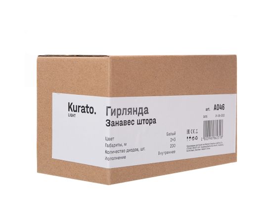 Светодиодная гирлянда Гирлянда внутренняя занавес ШТОРА 200, 2*3 метра, коннектор,белый (132747)