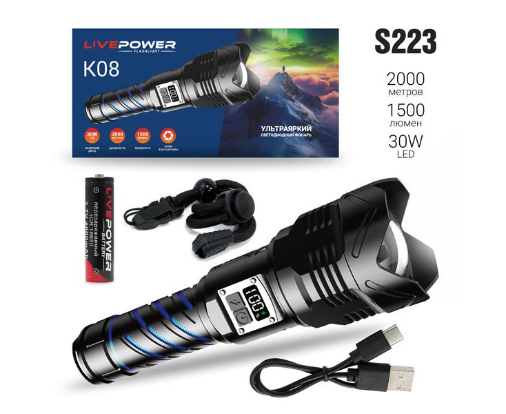 Светодиодный фонарь Live-Power K08 metallic
