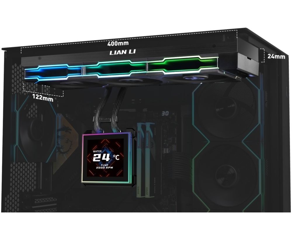 Компактный 360-мм радиатор (400x122x24 мм) с более тонким профилем для большей совместимости с корпусами и упрощения установки.