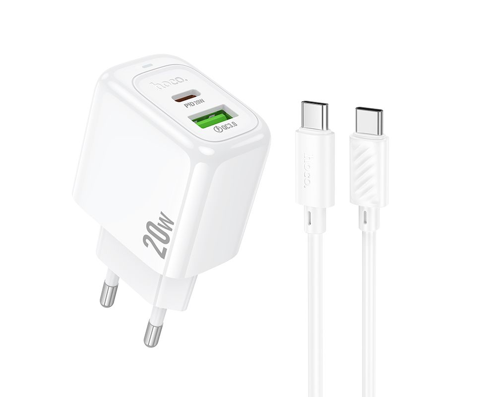 СЗУ 1USB+1Type-C 3.0A QC3.0 PD 20W быстрая зарядка для Type-C Type-C Hoco CS54A 1м (White)