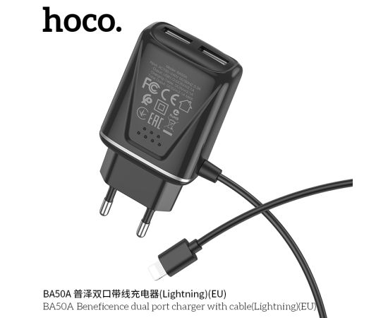 СЗУ 2USB 2.1A для Lightning 8-pin со встроенным кабелем Borofone BA50A 1м (Black)
