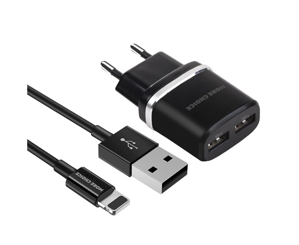 СЗУ 2USB 2.4A для Lightning 8-pin More choice NC22i (Black)