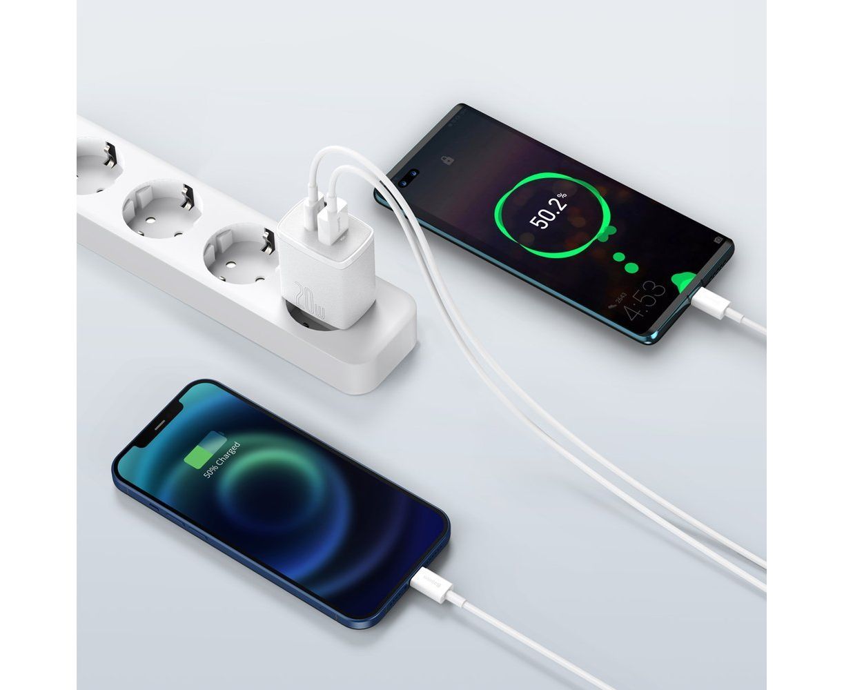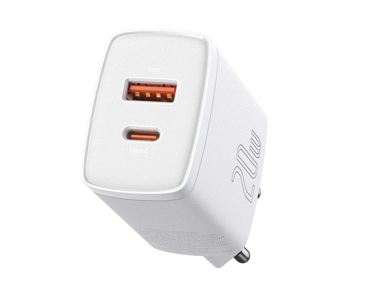 СЗУ Baseus Compact Quick Charger USB-C+USB-A 20W EU White