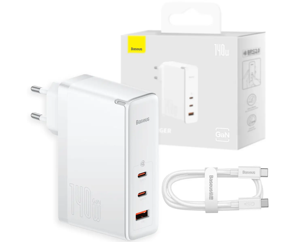 СЗУ Baseus GaN5 Pro CCGP100202 Fast Charger 2C+U 140W EU White (Type-C to Type-C 240W 1m)
