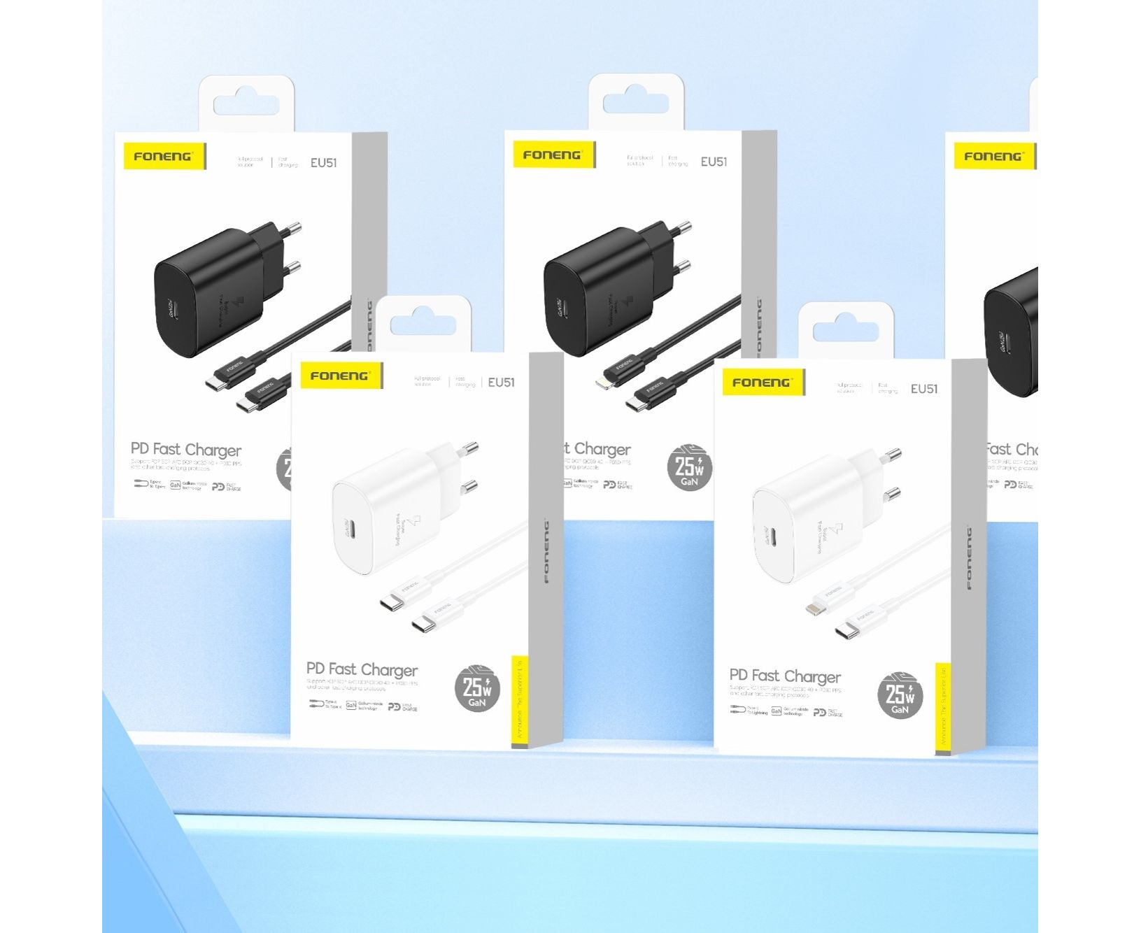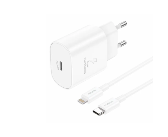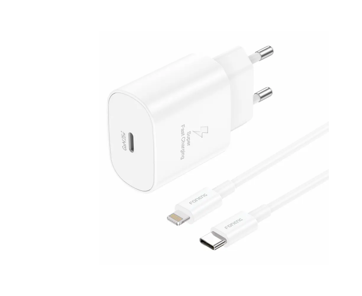 СЗУ Foneng EU51 GaN USB-C 25W + кабель Type-C to Lightning (White)