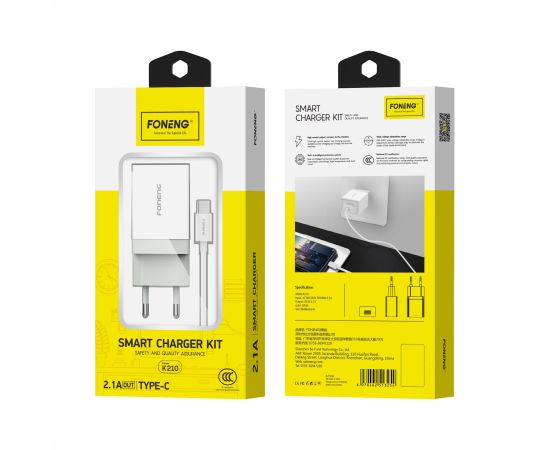 СЗУ Foneng K210 2.1A (1USB) + кабель Type-C (White)
