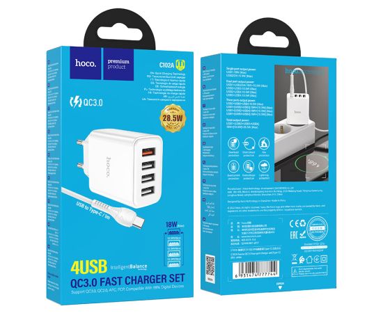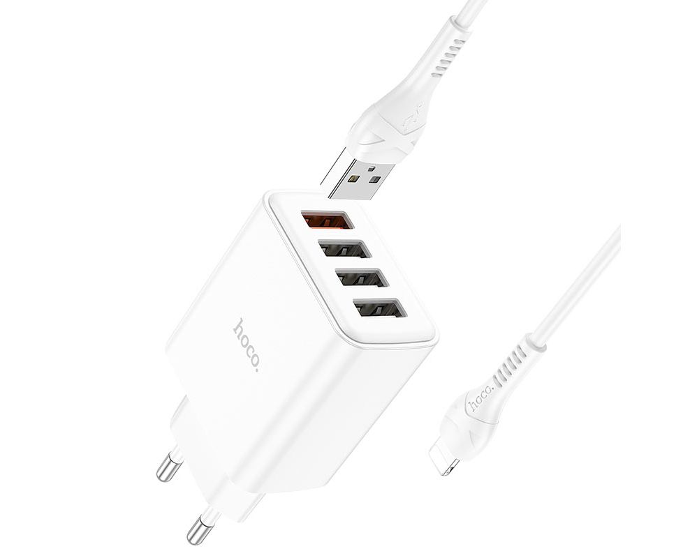 СЗУ HOCO C102A Fuerza QC3.0, 4USB (EU), (белый)