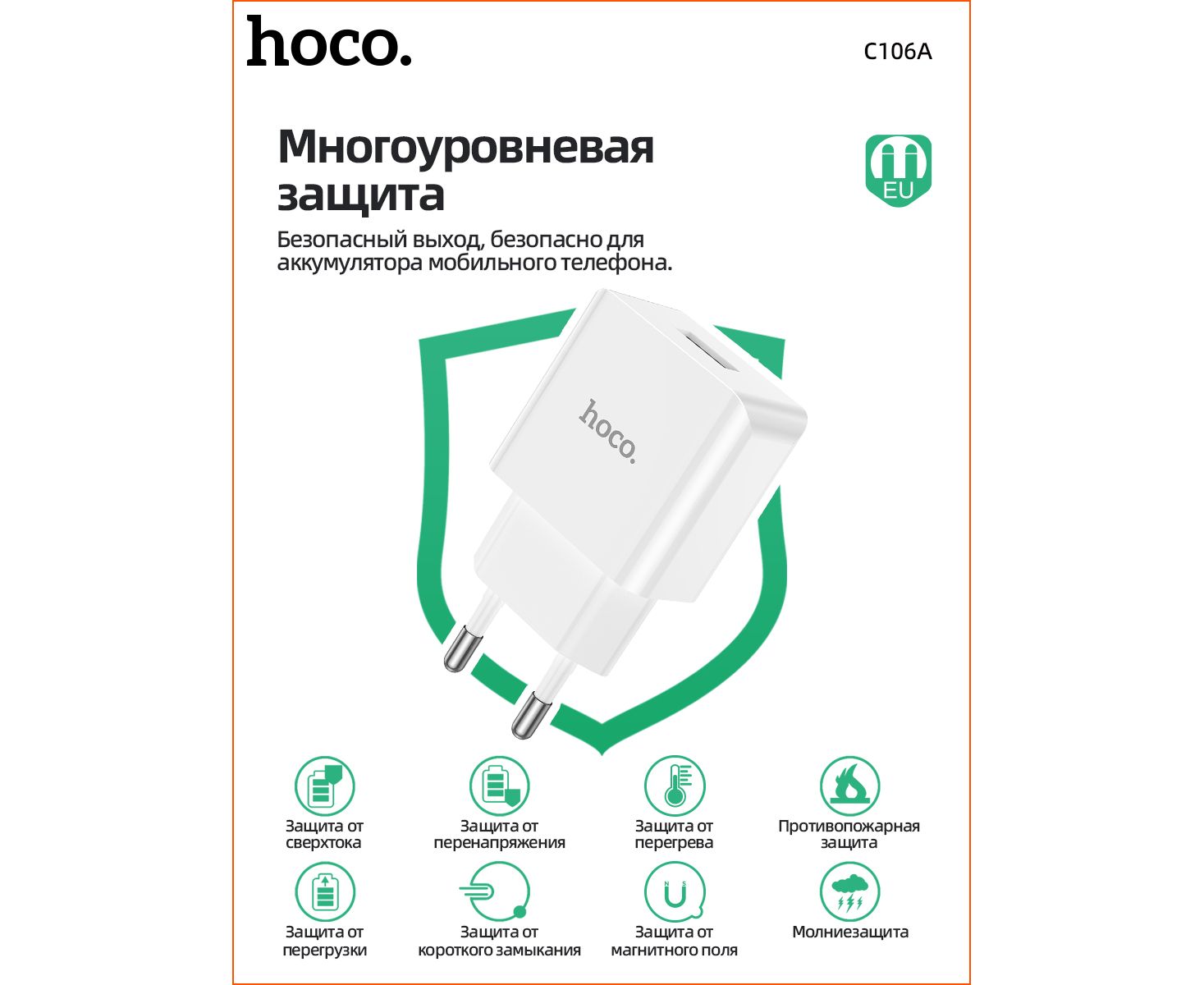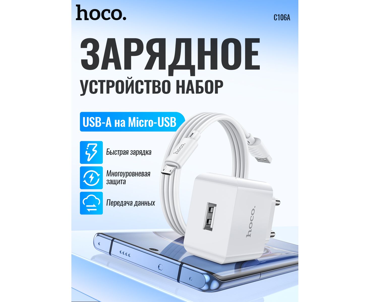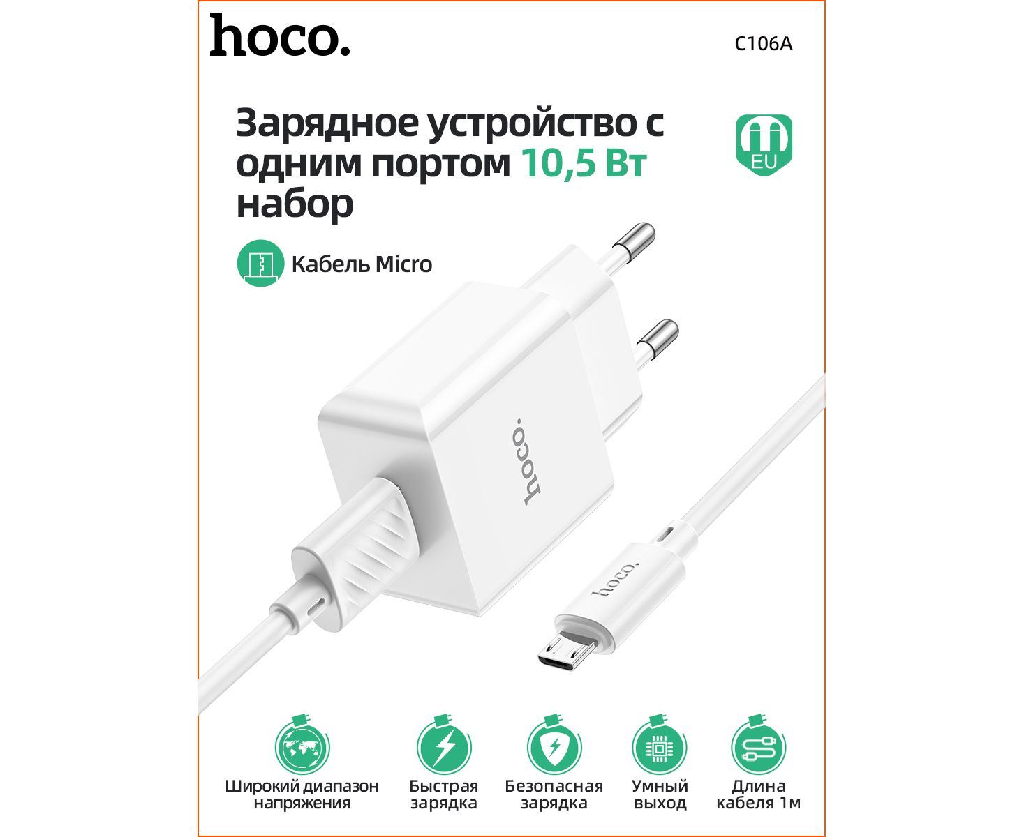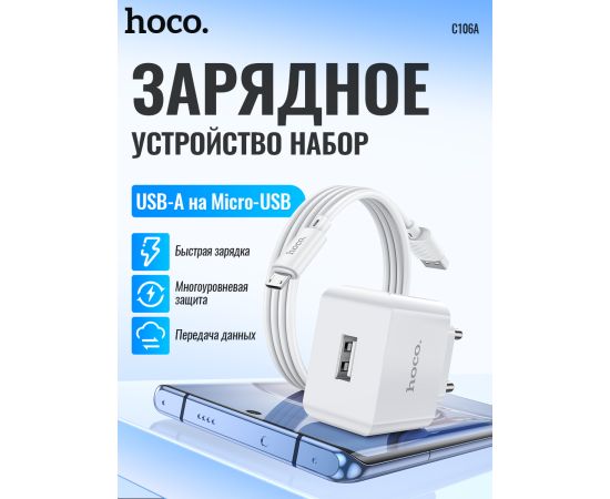 СЗУ HOCO C106A Leisure, 1USB + Micro (EU) (белый)