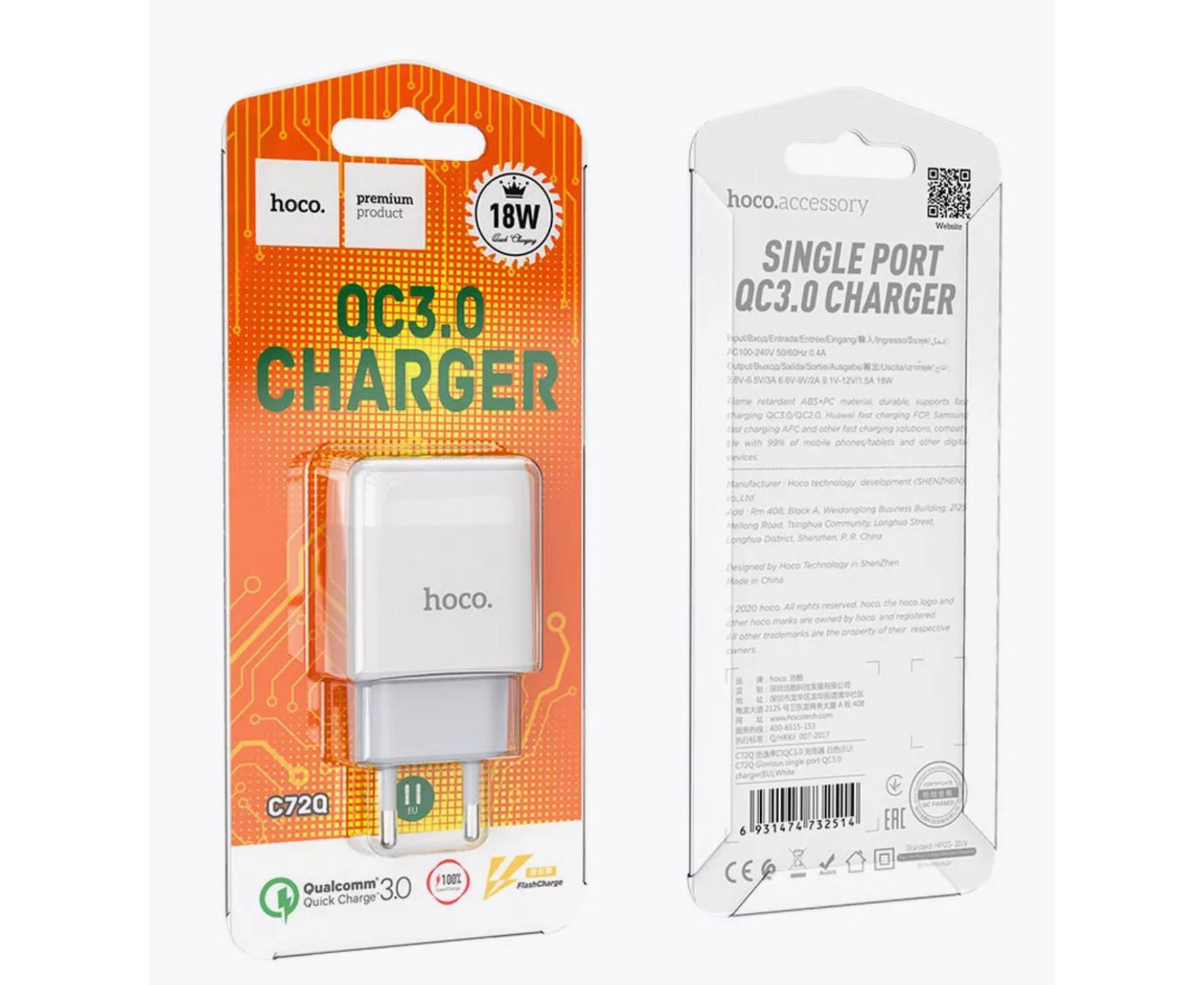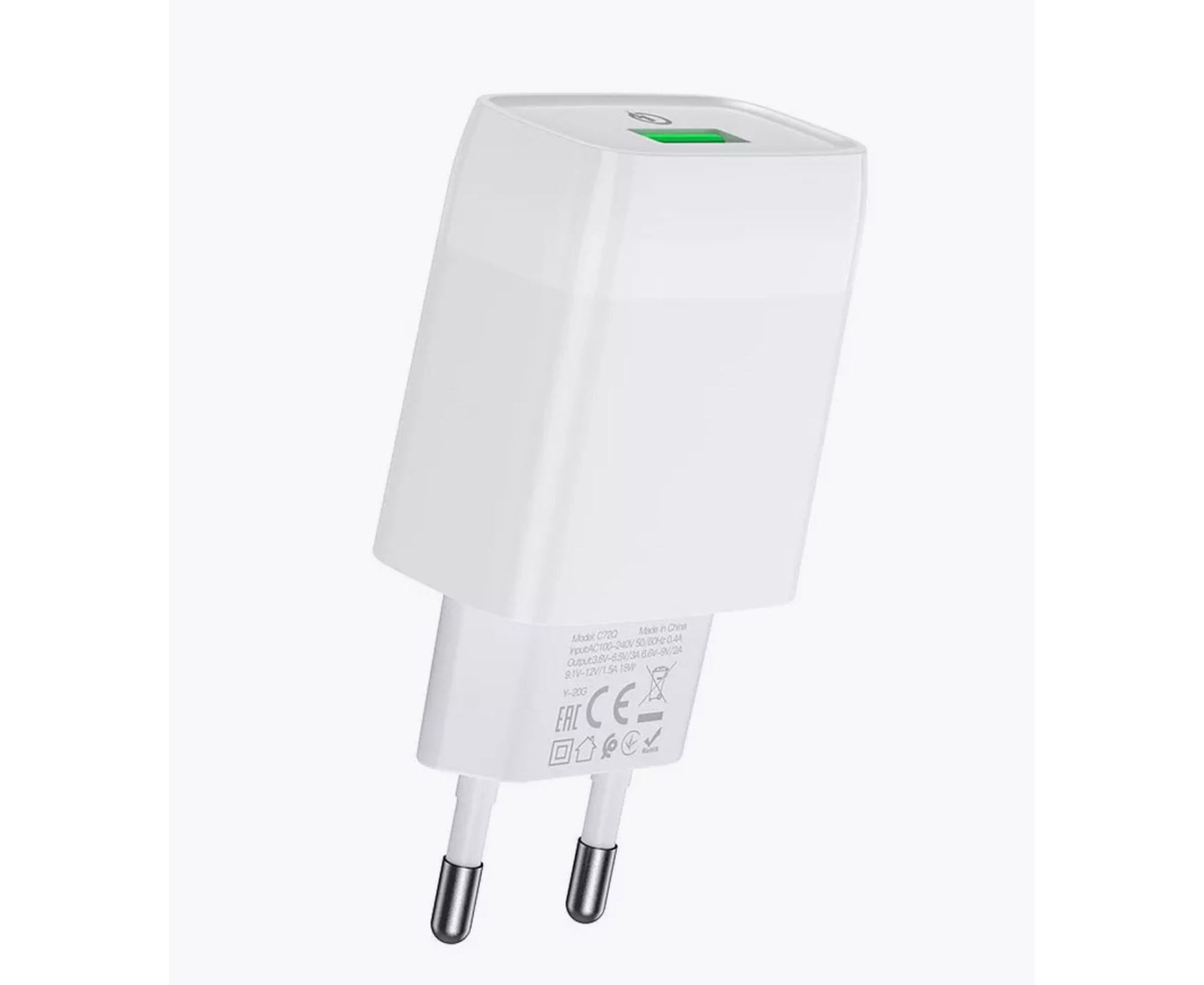 Комплектация Блок питания 1 USB HOCO C72Q Glorious, 3A, QC3.0 белый - 1 шт.; Кабель отсутствует